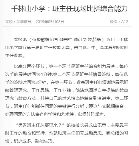 凌孟磊老师的“班主任能力竞赛”报道登载今日侨报。
