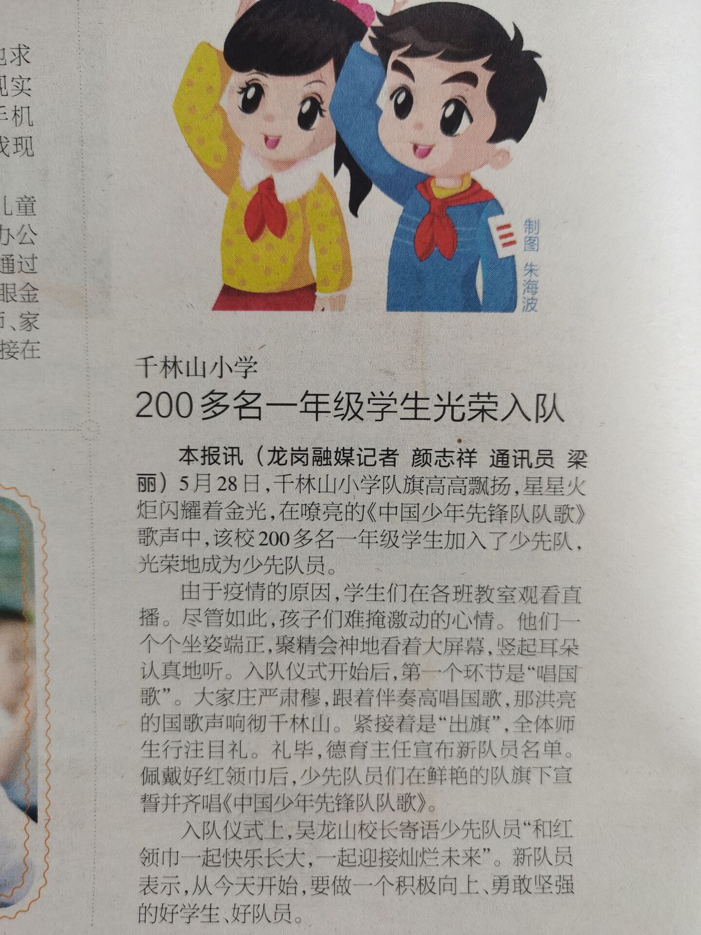 梁丽老师关于我校一年级学生入队报道登载今天的深圳侨报B04版!